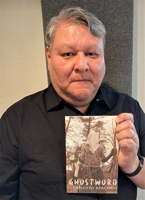 Crisosto Apache is the author of two volumes of poetry, GENESIS published by Lost Alphabet and Ghostword published by Gnashing Teeth Publication. An MFA graduate from Institute of American Indian Arts, they are Mescalero Apache, Chiricahua Apache, and Diné (Navajo) of the 'Áshįįhí (Salt Clan) born for the Kinyaa'áanii (Towering House Clan) and currently an Assistant Professor of English at the Rocky Mountain College of Art + Design. Their poems have been published in journals like Poetry magazine, The Rumpus, and anthologized in When the Light of the World was Subdued, Our Songs Came Through (WW Norton), edited by Joy Harjo.