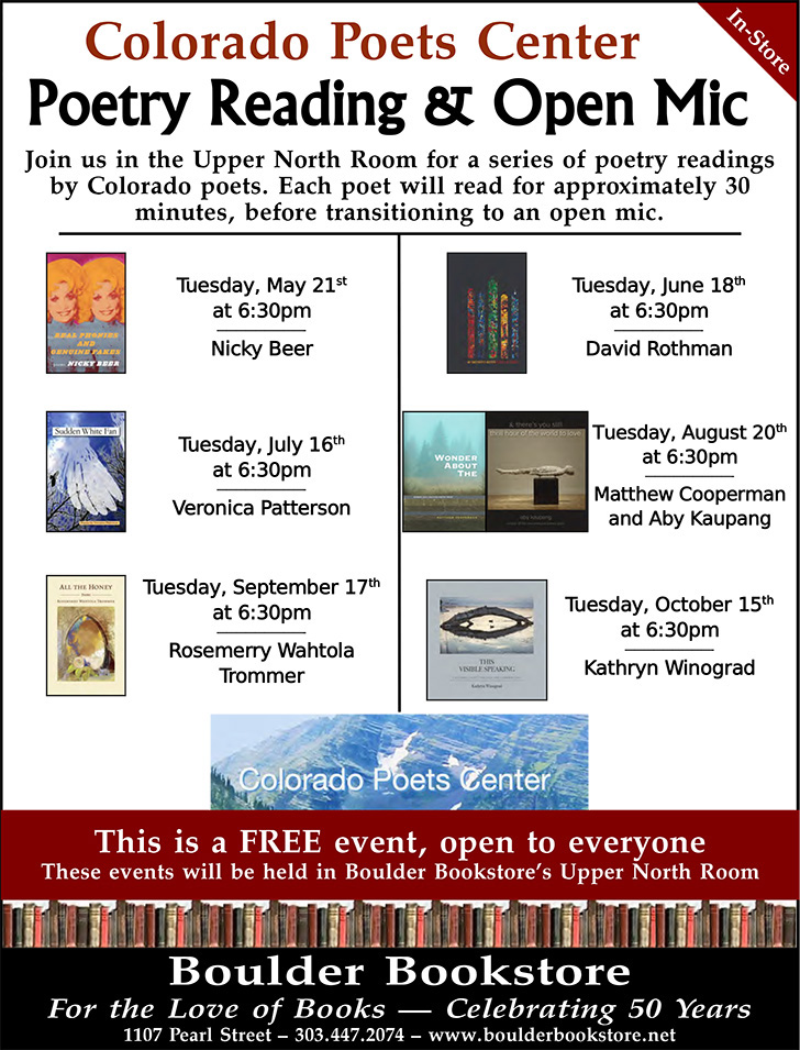 - provide stipends to the poets who read at the Boulder Bookstore,